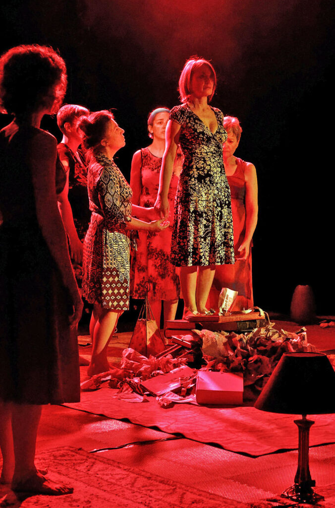 Sept femmes, représentant toutes les femmes du monde depuis la nuit des temps, filles, sœurs, épouses, mères, nous, vous, se tiennent debout et disent leur colère. L’homme en armes a toujours de bonnes raisons pour justifier la violence et la mort. Les femmes désormais se dressent pour dire non. Ce long poème dramatique est une invective nette et implacable contre la guerre.